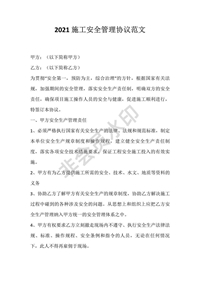 2021施工安全管理協(xié)議范文